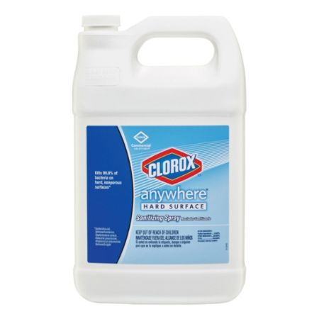 Clorox Anywhere Spray - Shoplet.com Clorox Commercial Solutions Anywhere Hard Surface Sanitizing Spray. Spray - 128 Fl Oz (4 Quart) - 1 Each - Translucent. #CLO31651. (0) Unavailable. More Options Available. $. Clorox Commercial Solutions Anywhere Hard Surface Sanitizing Spray. Liquid - 128 Fl Oz (4 Quart) - 144 / Pallet - Translucent.